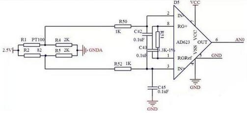 下圖是PT100的信號(hào)調(diào)理電路,我在產(chǎn)品上用的,大家可以參考一下。