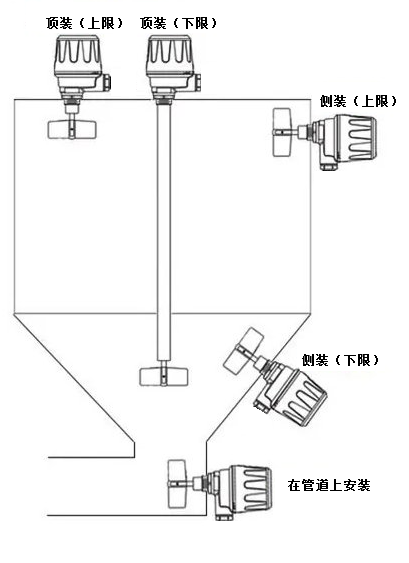 1.水平安裝時(shí),建議將開關(guān)以水平向下呈15°~20°的夾角安裝,以減少物料的沖擊。