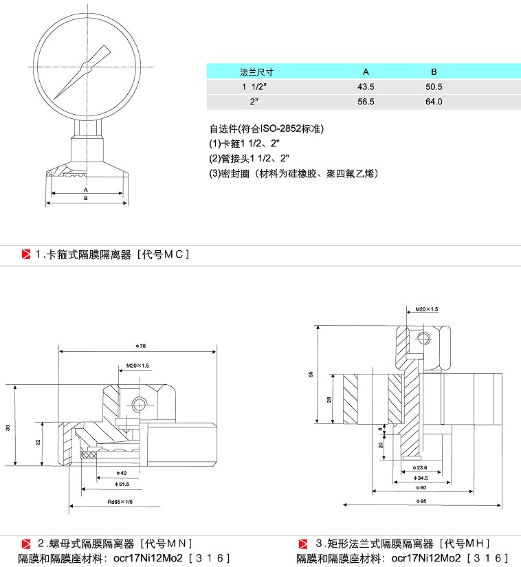 二、隔膜壓力表產(chǎn)品結(jié)構(gòu)配置: