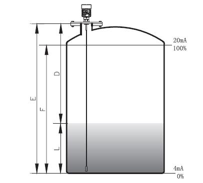 因空罐的距離E已知,則物位L為:L=E-D