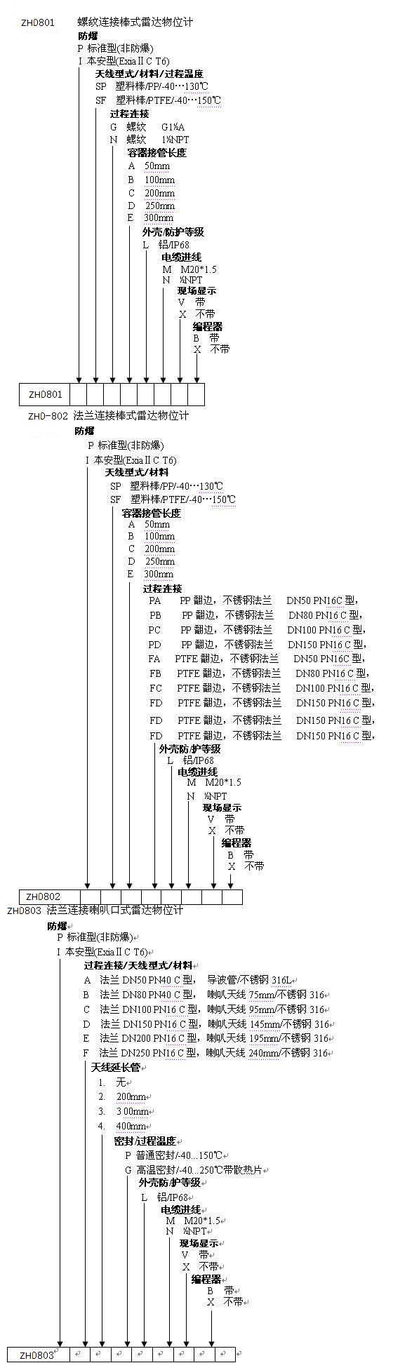 過程連接:ZHD801 (PP,PTFE天線) :G1-1/2 316L不銹鋼,: