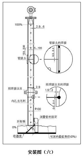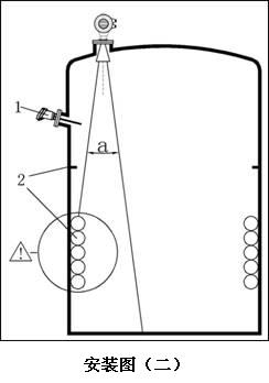3.如果罐內(nèi)有(1)(2)干涉物件,應(yīng)采用導(dǎo)波管進(jìn)行測(cè)量。
