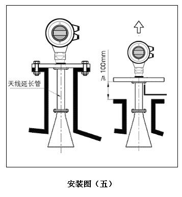 (五)安裝短管較長(zhǎng)時(shí)使用天線延伸管 (安裝圖五)